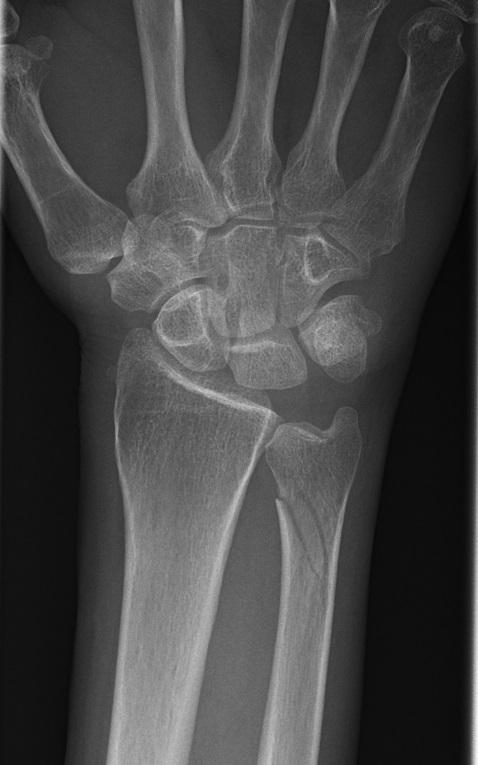 Distal stabil ulnafraktur, behandlades med kort gipsskena 4 v