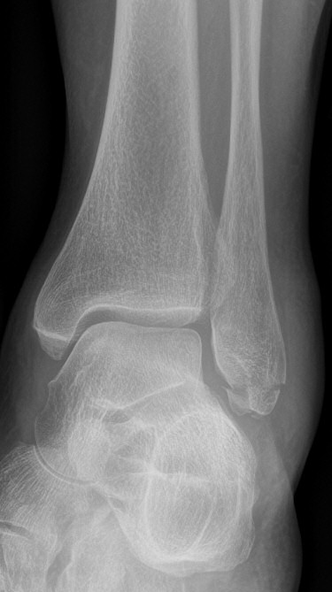 Tvärgående, hög fibulafraktur utan status i fotleden och som inte är ömmande då man försöker trycka isär fibula och tibia är ingen fotledsfraktur utan fibulafraktur.