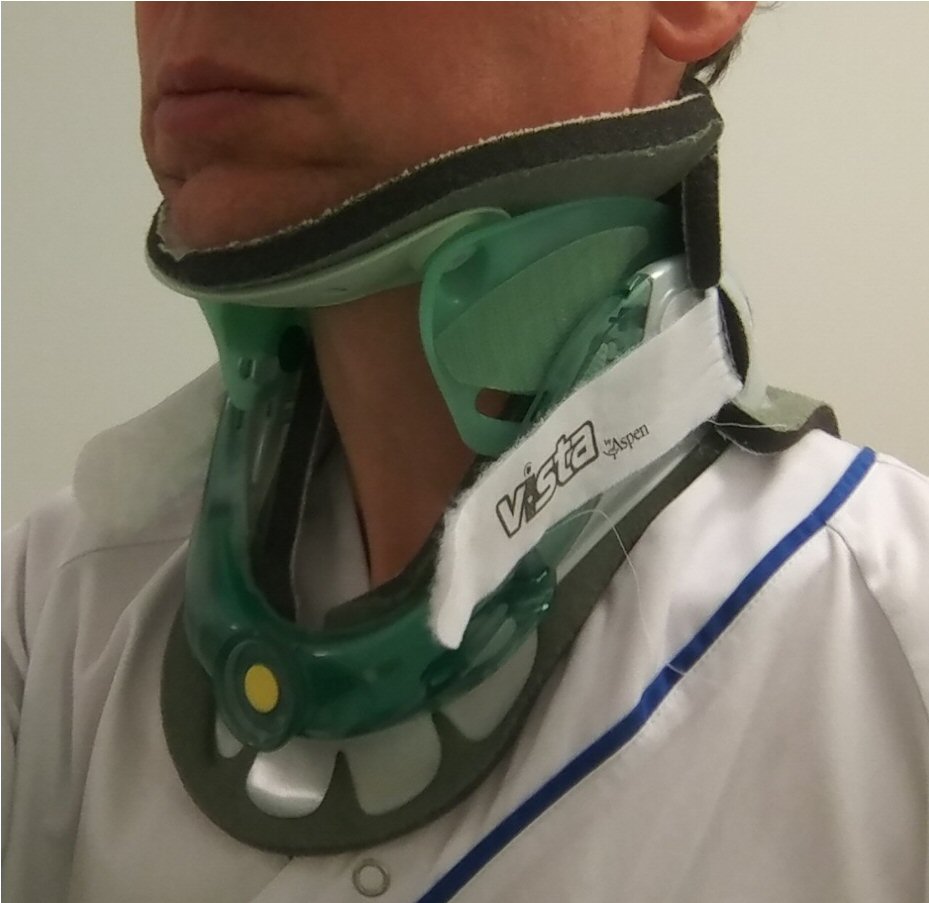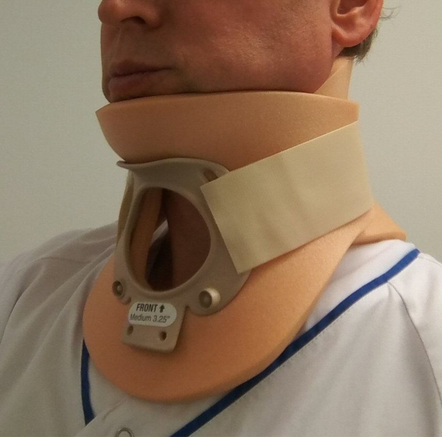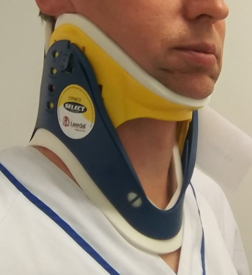 Har tidigare ofta satts på plats av ambulanspersonal på olycksplatsen. Kan ge tryckskador, byts snarast möjligt exempelvis till en C62-krage. Nu används istället "huvudblock", alltså kuddar på sidorna av huvudet som håller det på plats.