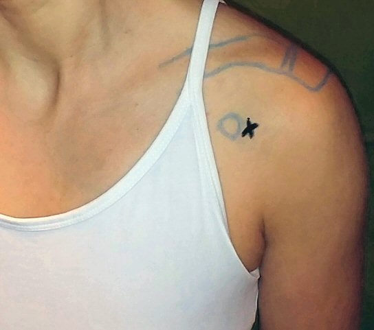 - Markera med penna med indragen spets ca 1 cm lateralt om processus korakoideus, där ska insticket ske.