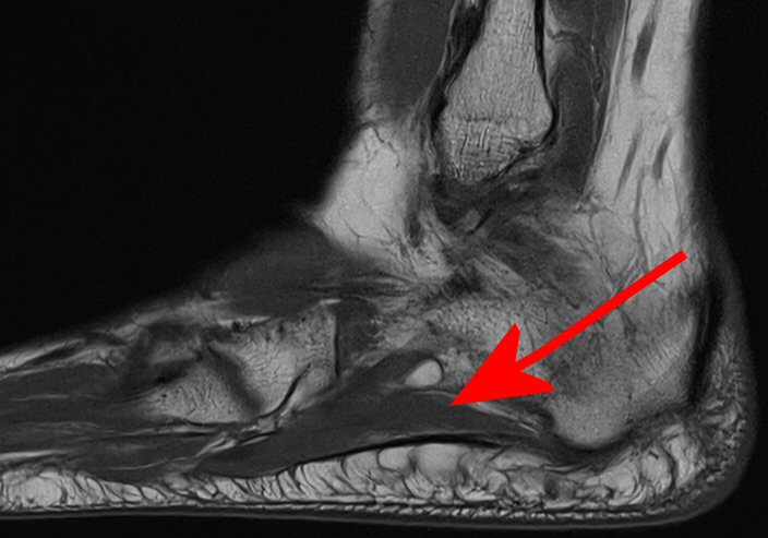 Kompression av n. planteris lateralis (gren av n. tibialis) mellan mm. abduktor hallucis longus och quadratus plantae [1, 2]. Nerven förmedlar sensorik från kalkaneus och motorik till mm. abduktor digiti minimi, flexor digitorum brevis och quadratus plantae [2].