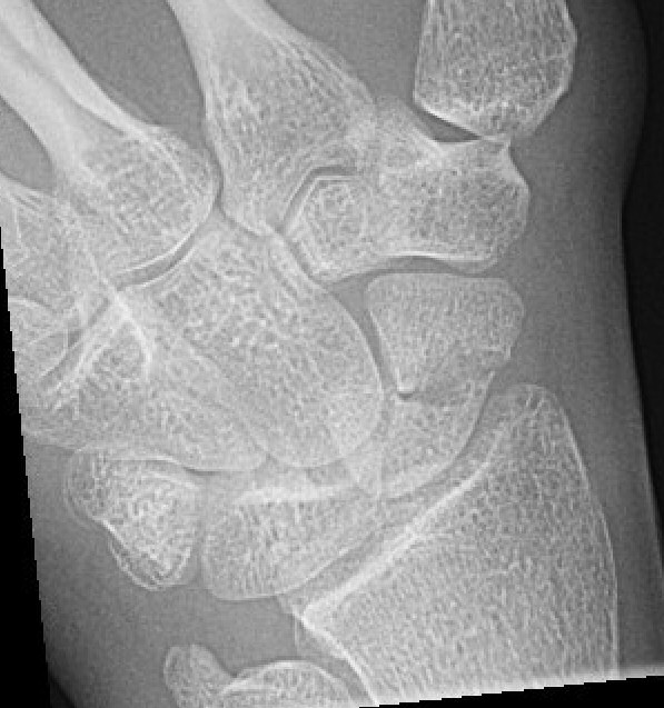 Om normal MR så är det ingen fraktur [1], men utred ev. SL-ligamentskada [3]. Patienten bör bli klart förbättrad inom ytterligare 2-3 veckor, bör annars undersökas igen av ortoped eller handkirurg inför ev. artroskopi.