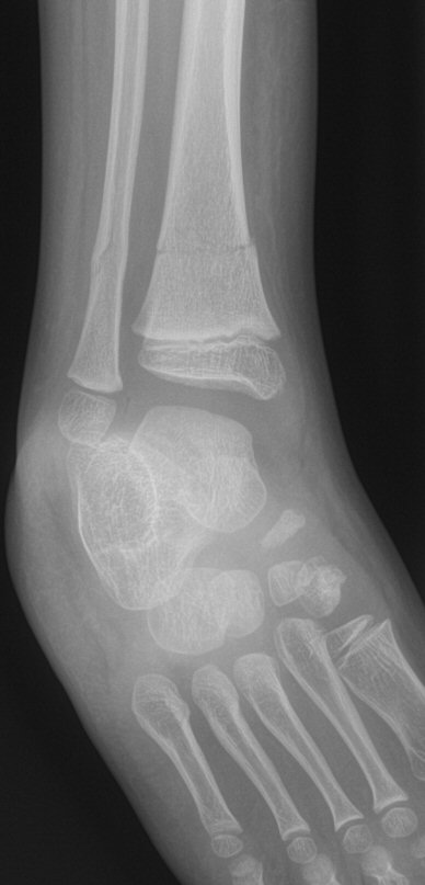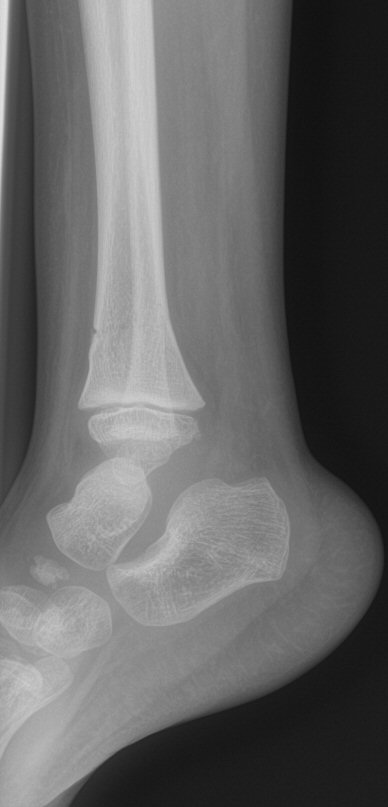 Distala tibiametafys- och fibuladiafysfrakturer. Behandlades icke-kirurgiskt.