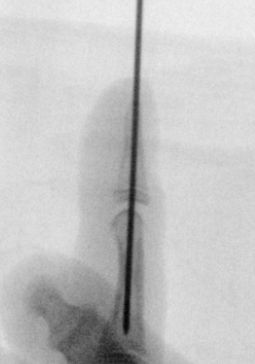- fixerar frakturen med längsgående stift förbi DIP-led