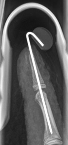 - Suturer fast den genom nageln och mot hud proximalt, det stabiliserar ev. fraktur