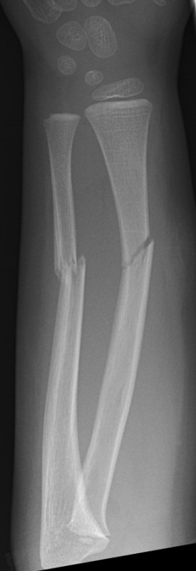 Vid diafysära frakturer i både radius och ulna så sätt TEN-spik i båda.