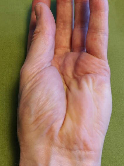 - Kupa handen för att lokalisera gränsen mellan tenar- och hypotenarmuskulatur, ungefär där bör incisionen göras. Man kan också flektera dig 4, ungefär så långt distalt bör incisionen gå.