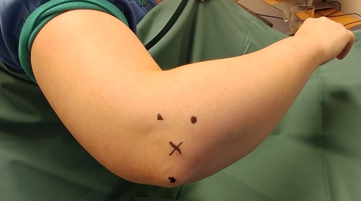 - Markera olekranonspetsen.